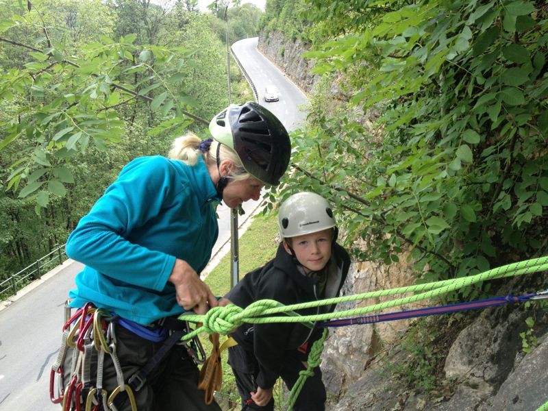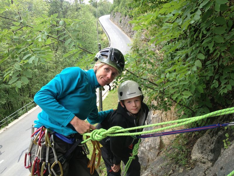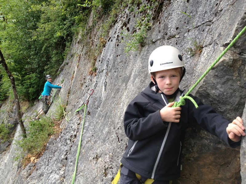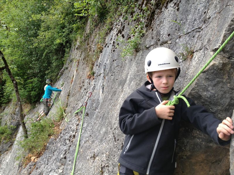 Laure et son fiston perfectionne leur technique d'escalade en tête. Comment poser une moulinette, un relai et plusieurs longueurs ?