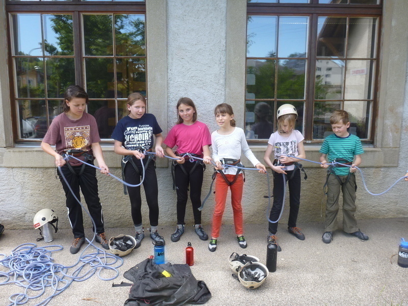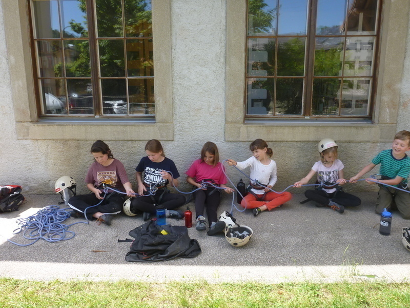 Ecole de noeud : nous tirons tous à la même corde pour apprendre le demi-noeud d'amarre ! Training "multipitch" pour certains.