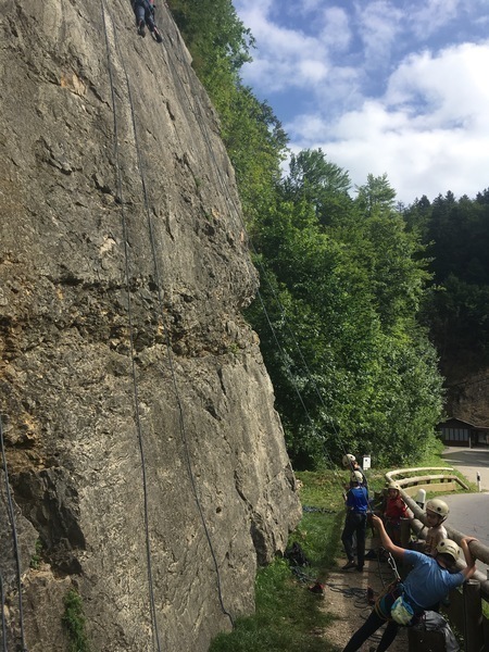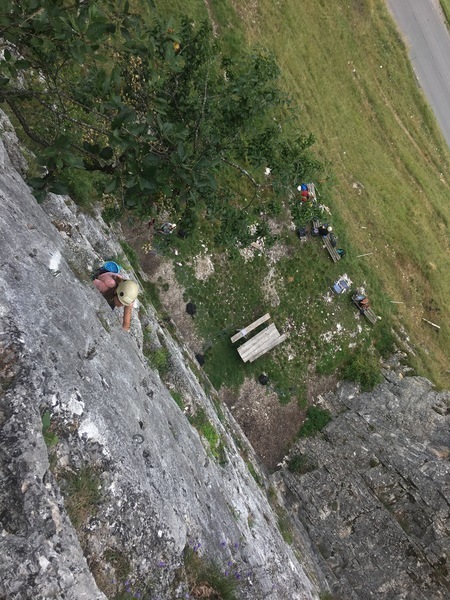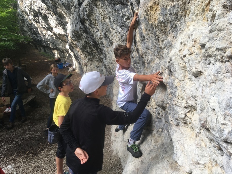 Nous retrouvons avec bonheur les voies de Vaulion où certains grimpent en tête jusqu'au sommet, émotions garanties !