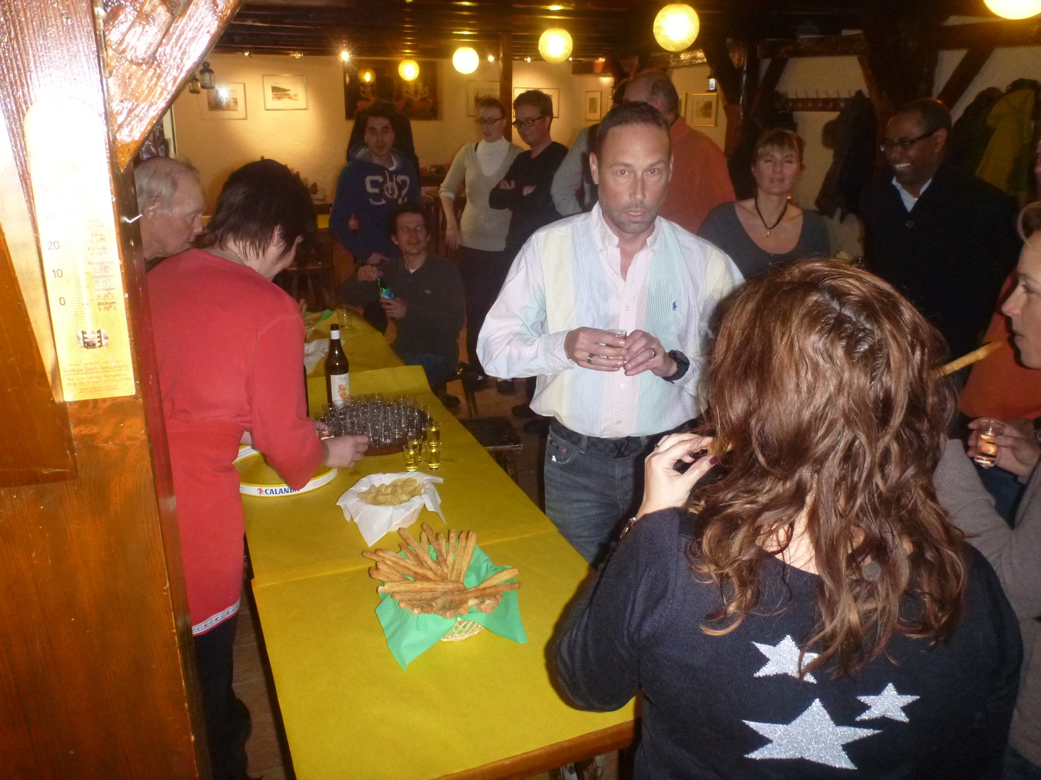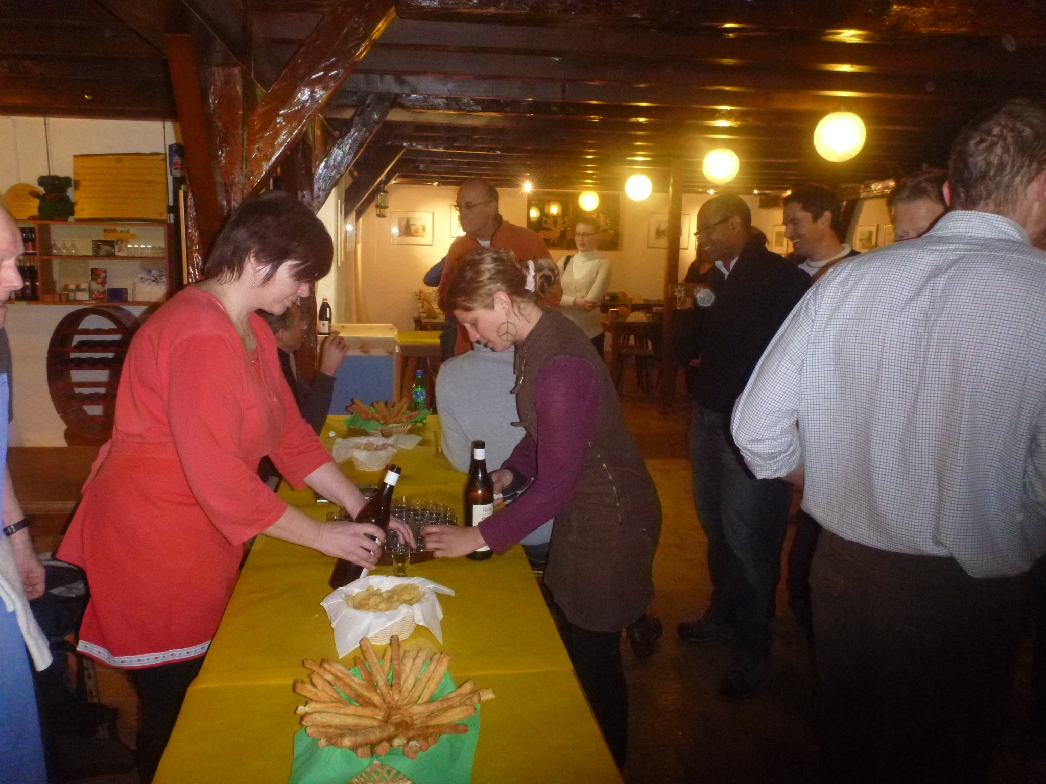 – Vin chaud, assiette de charcuterie, tarte aux myrtilles, café, vins de la région