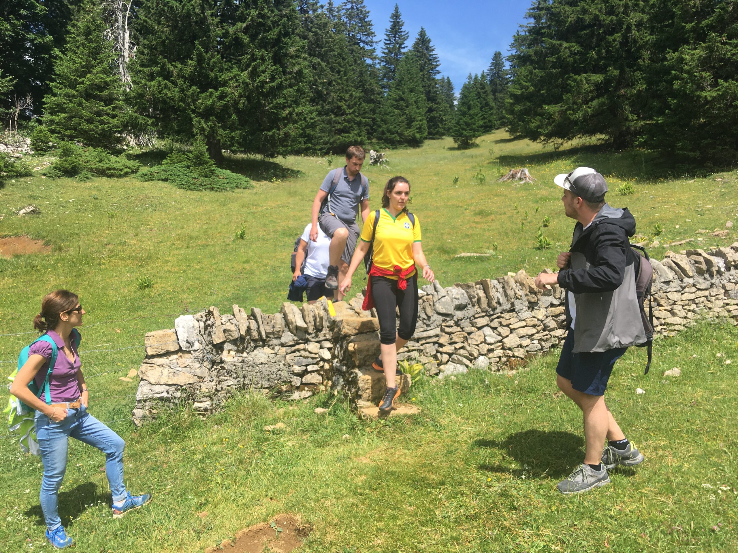 relais, cor des Alpes, tir à la corde, la pyramide, la pierre emballée, la ligne la plus longue, le ballon attaché, qui tiendra dans le cercle, rallye en forêt, venez goûter aux olympiades typiquement jurassiennes